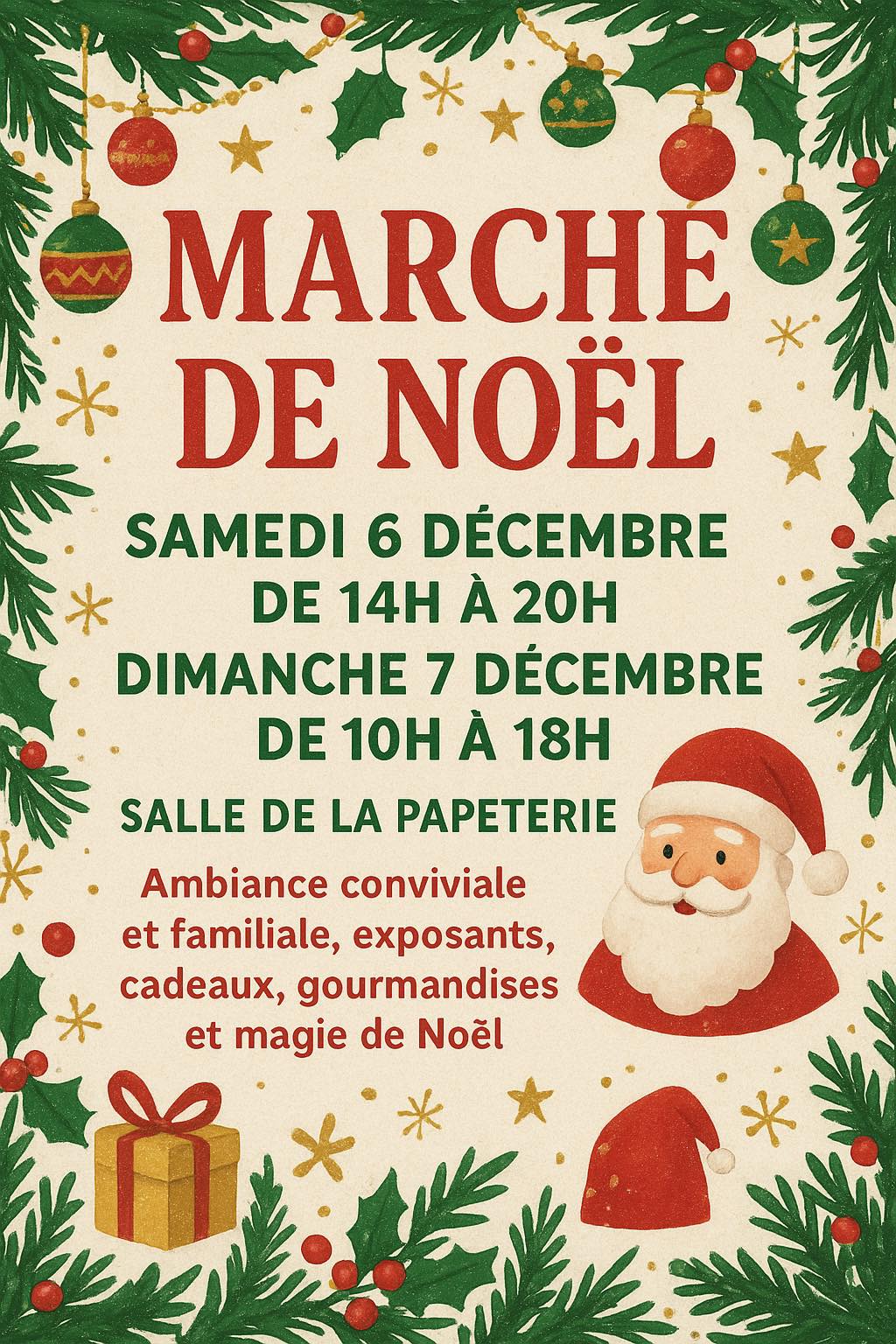 Nous invitons les artisans, commerçants et créateurs à venir exposer leurs produits et partager la magie de Noël dans une ambiance conviviale et familiale.